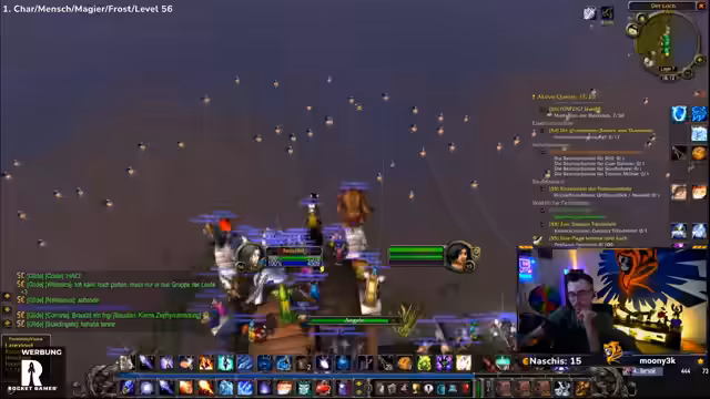 09:10:01Die Gruppe besucht Stratholme, einen Dungeon, und bereitet sich auf Boss-Kämpfe vor. Sie diskutieren Mechaniken wie Pol-Switching, bei der falsches Positionieren zur Tötung der ganzen Gruppe führen kann, und planen Fluchtwege zu einem Safe-Spot. Elites und Multiple Mobs werden bekämpft, mit Fokus auf den Vermeidung von Gräbern und der Nutzung von Items wie unterwasser-Atmung. Diskussionen über Quest-Qualifikation und hintere Eingänge, die den Dungeon verkürzen, zeigen tiefe Spielkenntnisse. Die Gruppe bleibt koordiniert, um schwierige Gegner zu überwältigen und Risiken zu minimieren, während sie auf den Endboss hinarbeiten.