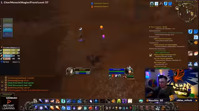 00:42:52Das Layer-System verursacht erhebliche Probleme: Trotz wiederholtem Wechsel zwischen verschiedenen Layern (bis Layer 7) spawnen Quest-Mobs wie Wildwedel nicht, was zu langen Wartezeiten und Frustration führt. Der Streamer bemängelt Bugs und ineffiziente Spawn-Raten. Parallel dazu bewältigt er knappe Kämpfe in Un'Goro Crater, darunter Beinahe-Tode durch Dinos, und zeigt sich irritiert über unklare Quest-Ziele und fehlende Mob-Spawns. Diese Probleme verzögern den Level-Fortschritt und demonstrieren die technischen Hürden des HC-Modus.