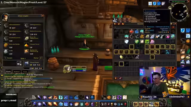 09:36:24Das Gespräch dreht sich um Lieblingsgerichte, wobei Nudeln mit Tomatensauce als das ultimative Comfort-Food gepriesen wird, während über Milchreis mit Apfelmus vs. Zimt und die Abwertung von Doppelapfel-Shisha debattiert wird. Gleichzeitig plant die Gruppe die Rückkehr zum Quest-Abgabeort, diskutiert Inventarmanagement (Fleisch für Pets, Möbelartefakte) und priorisiert das Sammeln von für den Molten Core benötigten Gegenständen wie Mondstoff.