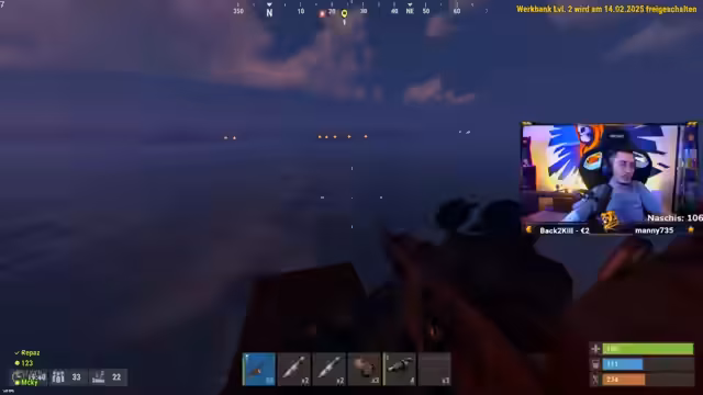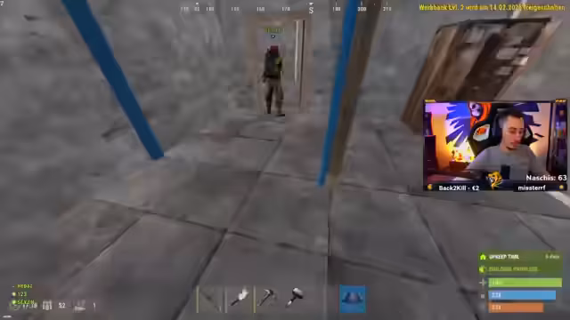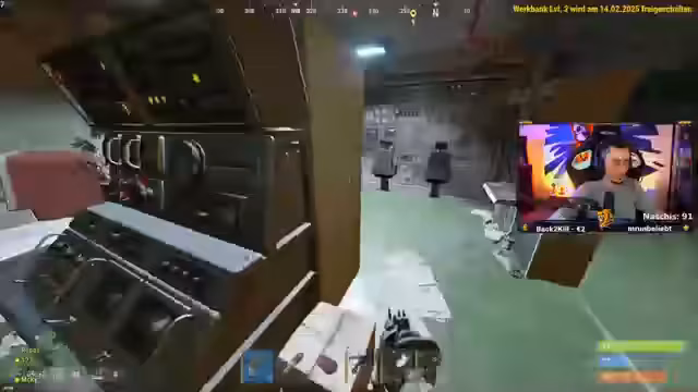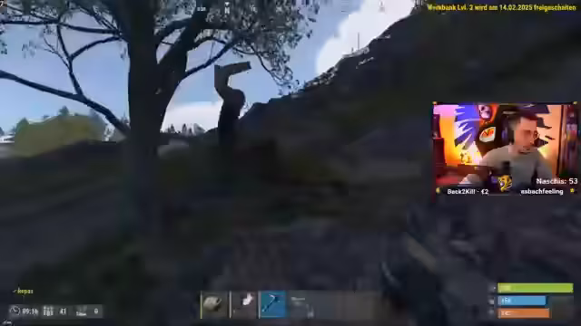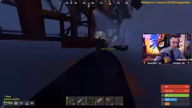 04:57:32Zu Beginn des Streams ist der Streamer einer der wenigen Spieler mit einer Waffe auf dem Server und plant, strategisch Druck auf andere auszuüben. Nach anfänglicher Jagd auf einen Spieler, der ertrinkt, beginnt die Suche nach Ressourcen wie Holz und Blauprinten. Der Streamer muss Essen kochen, während der Mangel an Ressourcen und Platz in der neu errichteten Basis zu Frustration führt. Ein Teammitglied wird von einem Bot erschossen und der Streamer muss die Leiche looten, was für Unruhe sorgt.