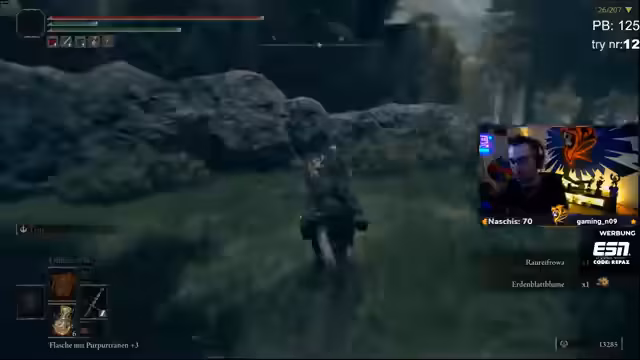 00:06:39Der Stream beginnt mit Begrüßungen des Streamers. Er erwähnt einen frisch beendeten Run in Dying Light und berichtet von einem Kinobesuch, bei dem er einen englischen Science-Fiction-Film, Astronaut, in der Originalfassung sah, was sich aufgrund von Audio-Problemen als herausfordernd erwies. Nach dem Film gab es eine längere Gaming-Session mit Counter-Strike. Für den aktuellen Elden Ring Run wird der Standort, Limgrave, genannt und es wird die Zielsetzung formuliert, endlich aus dieser Region auszubrechen und Bosse zu besiegen, um wichtige Items wie heilige Tränen zu farmen.