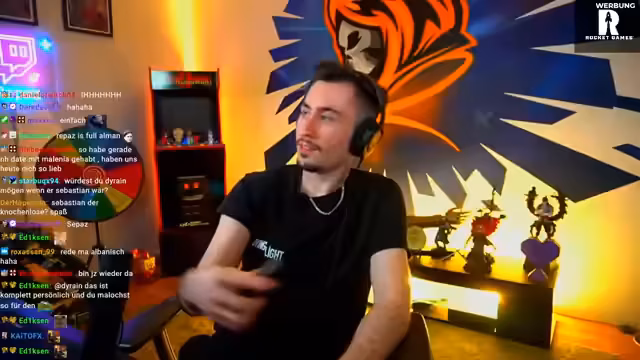 06:41:41Während des Streams kommt es zu verschiedenen Zwischenfällen und Interaktionen. Der Streamer erwähnt einen Vorfall mit einem Albaner, der ihn beleidigt hat, und diskutiert die Nationalität von Ali. Auch der Chat interaktiv stark: Es gibt Diskussionen, wer mitspielen darf, ein User wird für seine 'Fragerei' mit einem 'Frageverbot' belegt, und es gibt调侃 über andere Streamer wie Sam und Eileen.