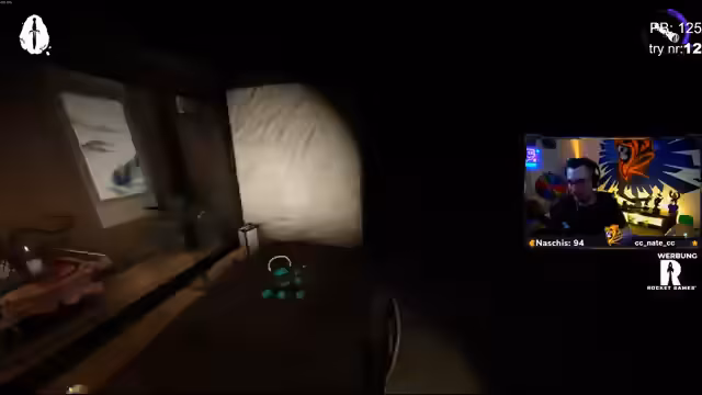 07:39:38Der Streamer gerät in Panik, als er von Eileen, einer gegnerischen Figur, verfolgt wird. Er versteckt sich verzweifelt in einem Schrank, da sie ihn zuvor überrascht hat. Während der Flucht schlägt er sich selbst ins Gesicht, blutet und vermutet einen gebrochenen Nasenknorpel. Er muss ständig laufen, um nicht gefasst zu werden, und sammelt dabei Gegenstände wie Medikits und Eier, was die Situation zusätzlich kompliziert und gefährlich macht.