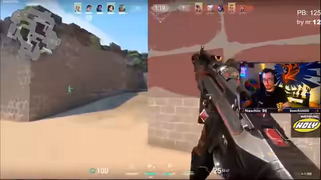 09:02:40Nachmittag und frühe Spiele Der Stream startet mit einem unkonventionellen Spielstil, bei dem vorrangig die Agenten Chamber und Yoro genutzt werden. Der Streamer ist unzufrieden mit dem Spielstil seines Teams, das seiner Meinung nach keine Risiken eingeht. Es kommt zu Frustration über die schlechte Performance und die taktischen Entscheidungen der Mitspieler, die zu frühen Toden führen. Ein wiederkehrendes Thema ist die Unzufriedenheit mit den Fähigkeiten von Yoro und die Angst, in den unteren ELO-Bereichen zu landen. Der Streamer diskutiert auch seine körperliche Verfassung, insbesondere sein angewinkeltes Knie, das möglicherweise Schmerzen verursacht.