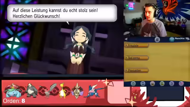 02:47:15Nach den Geschehnissen in der Stadt bereitet sich der Streamer auf seine Reise zur achten Arena vor. Das Team von Lord R. gratuliert ihm zur Rettung der Welt und überreicht ihm ein Pokémon als Geschenk. Der Streamer macht sich nun auf den Weg, um den Arenaleiter Kaskade zu finden, der seine Pokémon ins Visier genommen hat und den finalen Kampf vorbereitet.
