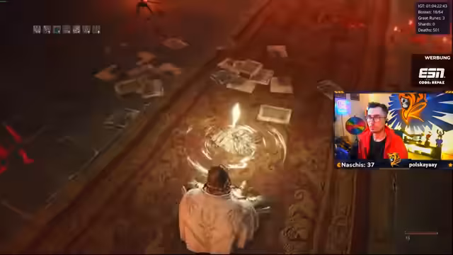 11:17:01Im Verlauf des Streams wird ein zufälliger Farm-Spot für Runen entdeckt, der sich als extrem effektiv erweist. Gegner, die Gaius genannt werden, töten sich gegenseitig durch ihre Angriffe und hinterlassen eine enorme Menge an Runen. Der Streamer erkennt den Spot und beginnt, massenhaft Runen zu sammeln, was es ihm ermöglicht, seine Attribute extrem zu steigern und seine Ausdauer zu maximieren.