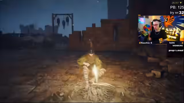00:50:58Im weiteren Verlauf des Streams erzielt der Streamer einige Erfolge, darunter das Besiegen von Bossen mit nur einem Treffer (one-shot) und das Erreichen wichtiger Meilensteine. Gleichzeitig erlebt er auch Rückschläge, wenn er durch bestimmte Gegner stirbt oder durch das Scaling zu starken Feinden besieigt wird. Der Streamer kommentiert diese Ereignisse humorvoll, aber zeigt auch seine Frustration, insbesondere wenn er durch vermeidbare Fehler stirbt.