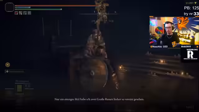 03:28:08Zu Beginn des Streams konzentriert sich der Streamer auf das Sammeln von Runen und wichtigen Items wie Dunkelschmiedsteine. Es gibt Verwirrung um den Namen 'Aspar-Uralt-Breh', der eigentlich 'Ansbach uralt' lautet. Der Streamer benötigt verschiedene Stein-Upgrades, insbesondere für seine Waffe, welche er verbessern möchte, um gegen Bossen besser bestehen zu können.