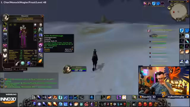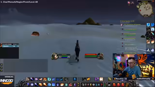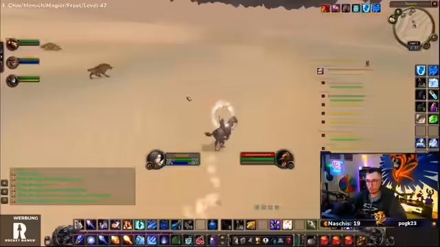07:35:50Der Streamer erkundet die karge Wüste von Tanaris, stellt aber fest, dass das Gebiet für sein aktuelles Level immer noch als gefährlich gilt. Er stolpert über einen Rare Mob, den er als 'Arscholler' identifiziert, und überlegt, ob der Kampf lohnenswert ist. Gleichzeitig stellt er die Sinnhaftigkeit seiner Berufe infrage, da er das Farmen und Herstellen von Gegenständen als furchtbar ansieht, sich aber am Ende doch dazu durchringt, weiterzumachen.