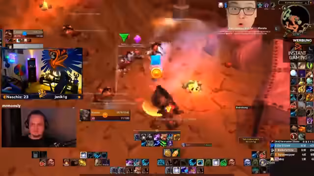 01:19:59Während der Vorbereitung kommt es zu technischen Problemen, die die Gruppenstabilität gefährden. Ein Spieler wird fälschlicherweise aus der Gilde geworfen, was zu einem Crash der Lobby führt und nur die Hälfte der Gruppe im Dungeon verbleibt. Der Streamer bemerkt plötzlich einen Zuschaueranstieg, was auf die ungewöhnliche Situation zurückzuführen ist. Nachdem der Fehler behoben ist, wird die Gruppe neu aufgebaut und der Raid kann fortgesetzt werden. Dies zeigt die Herausforderungen bei der Koordination während eines Live-Streams.