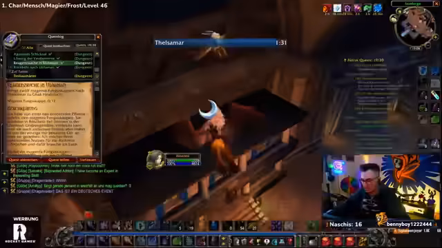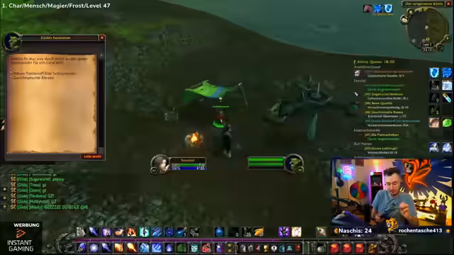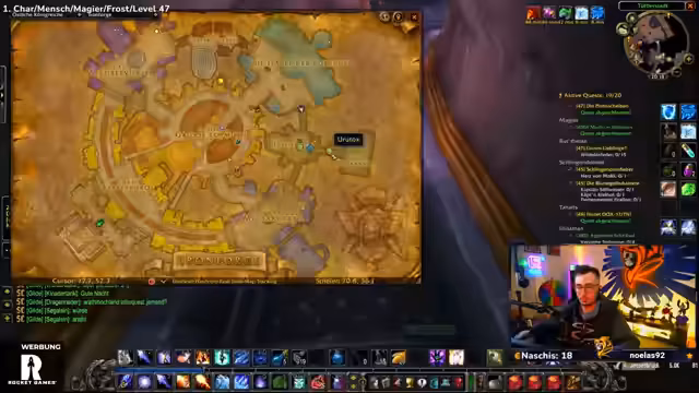 04:47:48Nach dem Dungeon-Besuch beschließt der Streamer, eine Quest in Tanaris abzugeben. Er hat einen Schlüssel für ein Schiff und schlägt vor, als Gruppe eine Truhe darin zu öffnen, was als gruppeninternes Abenteuer dargestellt wird. Es gibt eine Diskussion über die aktuelle Questsituation im Spiel und welche Gebiete sich für den nächsten Level-Sprung eignen. Der Streamer zeigt sein breites Wissen über die Spielwelt und gibt hilfreiche Tipps, wohin die Reise als nächstes gehen könnte.