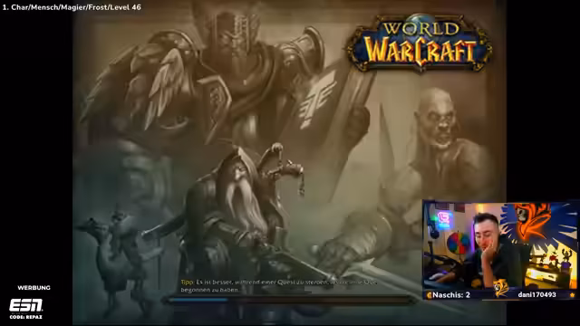 00:04:58Der Stream startet mit persönlichen Einblicken in den desolaten Schlafzyklus des Streamers. Gleichzeitig wird der erste wichtige Teil des Events, die Buff-Annahme, für 19 Uhr angekündigt. Die Stimmung ist zunächst entspannt, als der Streamer Cyberpunks Fortschritte in World of Warcraft begutachtet. Der Fokus liegt auf dem Gameplay, doch bereits tauchen erste Hinweise auf organisatorische Pflichten wie ein geplantes Gilden-Meeting auf, was anfänglich auf Ablehnung stößt.