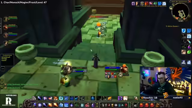 03:50:37Die Gruppe kämpft gegen die ersten Mobs in Zul'Farrak. Es wird ein strategischer Pull geplant, bei dem man aufpassen muss, nicht zu viele Adds auf einmal zu ziehen. Die Gruppe spaltet sich auf, um verschiedene Mob-Gruppen gleichzeitig zu bekämpfen. Der Streamer gibt präzise Anweisungen zur Positionierung und zum Skill-Einsatz, um den Kampf effizient und ohne Verluste zu gestalten.