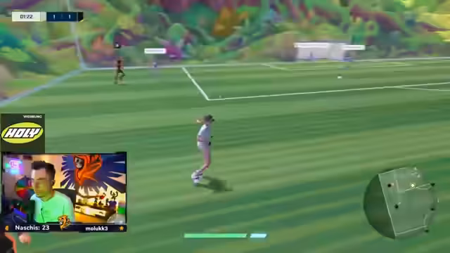 02:22:38Ein spezifischer Fehler im Spiel wird besprochen, bei dem der Ball mehrere Meter teleportiert wurde, was zu einem Tor führte. Der Streamer ist verärgert und sieht dies als unfairen Bug. Die eigene Leistung als Torwart wird dagegen als stark und fokussiert beschrieben. Eine aufkommende Frustration über die Mitspieler entlädt sich in kurzen Schuldzuweisungen und die Nervosität steigt, besonders da das Spiel langsam ins Wanken gerät.