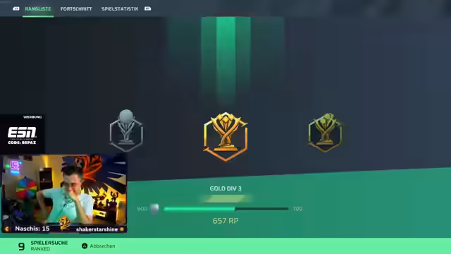 00:12:57Die Session mit der Crew beginnt. Der Streamer ist Torwart und findet den Mitspieler Asics sehr stark. Nach dem ersten verlorenen Match stellt er klar, das Ziel sei "Play until we lose", also ununterbrochen weiterzuspielen, bis eine Niederlage eintritt. Er bewundert die Performance von anderen Streamern wie Dalu, der regelmäßig Placements schafft und ähnlich viel verdiene wie die Top-Streamer, was er als unglaublich bezeichnet.
