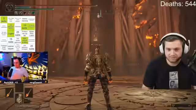 00:42:22Es wird über die Vorbereitung auf einen Bosskampf gesprochen, wobei die Wahl des richtigen Talismans und der Arznei im Vordergrund steht. Es wird erklärt, dass der Talisman gewählt wurde, um die Resistenz gegen körperlichen Schaden zu erhöhen, da der Boss hauptsächlich physischen Schaden verursacht. Die Arznei wird ausgewählt, um Feuerangriffe zu verstärken und den erlittenen Schaden zu reduzieren. Es wird betont, dass die Magma-Klingen eine treue Waffe sind, aber nicht als "broken" gelten. Es wird kurz auf ein mögliches Bingo-Spiel während einer längeren Watch-Party eingegangen, bevor der Fokus wieder auf den bevorstehenden Kampf gelenkt wird. Es wird die Musik des Bosskampfes gelobt und die Bedeutung von dicken Heiltränken hervorgehoben, die durch den Purpur-Talisman verstärkt werden. Es wird die Schwierigkeit des Kampfes betont, insbesondere die hohe Frequenz der Angriffe des Bosses, die es schwierig macht, Angriffsmöglichkeiten zu finden. Es wird die Komplexität der Angriffsmuster des Bosses hervorgehoben und die Notwendigkeit, diese zu studieren, um erfolgreich zu sein. Es wird auch die Effektivität der eigenen Tränke gelobt und die Bedeutung des richtigen Timings beim Ausweichen betont.