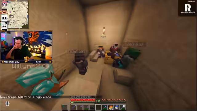 09:49:51Zu Beginn des Streamsabschnitts stehen die Teammitglieder im Mittelpunkt der Synchronisation. Es wird intensiv daran gearbeitet, einen verpasnten Mitspieler per Discord-Freundschaftsanfrage einzuladen, um die gesamte Gruppe im Server zusammenzuführen. Nach erfolgreicher Einladung und der Zusammenführung in die Chatgruppe werden die Bauten besprochen. Es herrscht Dringlichkeit, da die Wolle fast aufgebraucht ist und ein sofortiges Treffen unten anberaumt wird, um mit den Bauarbeiten zu beginnen. Priorität hat das Beschaffen von Fackeln, da diese Mangelware sind.