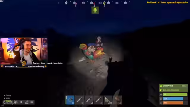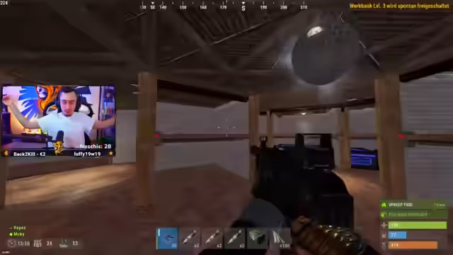 00:04:20Willkommen zu Plebsi's Rust-Stream, Tag 6. Der Streamer startet mit dem Plan, heute alles für den morgigen Tag vorzubereiten, an dem Tier 3 freigeschaltet wird und ein geplanter Raid stattfinden soll. Ziel ist es, einer bestimmten Gruppe eine "Genugtuung" zu bescheren und ihre Basis zu zerstören. Der Streamer erwähnt, dass er körperlich erschöpft ist, da er am Vortag wiederum 15 Stunden gespielt hat, und teilt mit, dass gestern Abend bereits ein erfolgreicher Loot im Cargo stattgefunden hat, bei dem trotz Gegenwart von Spielern Waffen erbeutet wurden.