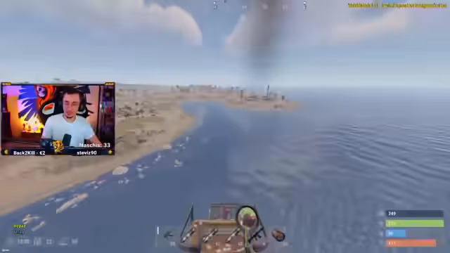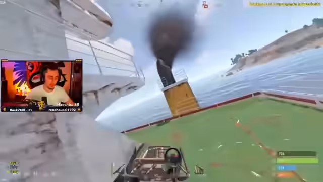 01:37:07Die gegnerische Gruppe greift koordiniert an, unterstützt mutmaßlich durch Metagaming aus dem Chat. Es kommt zu einem heftigen Kampf, bei dem ein Gegner aus dem Boot heraus attackiert wird. Trotz des Drucks gelingt es dem Stream-Team, die Eindringlinge abzuwehren. Die gegnerische Gruppe ist zahlenmäßig überlegen, das Stream-Team kann jedoch mit taktischem Geschick und Rückenfeuer die Oberhand gewinnen und mehrere Gegner eliminieren. Nach dem knappen Sieg übernehmen die Teammitglieder die Kontrolle über das Schiff und looten die verbleibenden Kisten.
