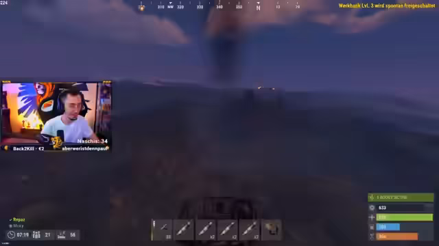 05:22:10Ein unerwarteter Gegner hält sich in einer exponierten Position oben auf dem Server auf, was für Überraschung sorgt. Der Streamer verfolgt den Gegner, der sich clever versteckt und über das Wasser bewegt. Nach einem Fight wird der Gegner mit nur noch 12 HP ausgeschaltet, wobei ein Teamkollege den Finisher landet. Anschließend erkundet der Streamer die Umgebung und stellt fest, dass Gegner, insbesondere Anfänger, mit untypischen und schwer zu erwartenden Taktiken campen. Eine Begegnung mit einem anderen Spieler führt zu einer hitzigen Auseinandersetzt über Loot und den Verlust von Waffen, woraufhin beschlossen wird, den Gegner gemeinsam auszuschalten.