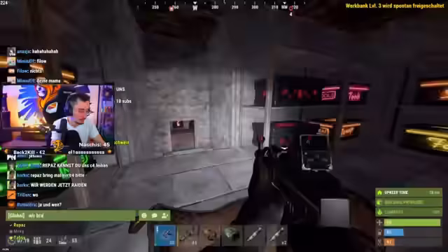08:20:44Der Streamer und sein Team treffen auf andere Spieler, darunter Annika, und versuchen, friedlich zu interagieren. Es kommt zu Diskussionen über das Hinterlegen von Landminen und die allgemeine Sicherheit der Basis. Das Team macht sich darauf bereit, für einen möglichen Angriff oder Konflikt gerüstet zu sein, verteilt Waffen wie Thompsons und plant Aktionen gegen andere Gruppen wie die von Kuba.