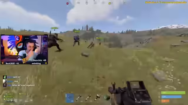 05:28:15Ein feindlicher Helikopter wird abgeschossen und stürzt ab, was einen Kampf um den darin enthaltenen Loot auslöst. Während des Wartens auf die Beute werden mehrere Minis an der Landestelle beobachtet. Der Streamer und seine Verbündeten beschließen, aus dem Hinterhalt anzugreifen, stoßen aber auf starken Widerstand von mindestens sechs Spielern. Es kommt zu einem chaotischen Gefecht, bei dem der Streamer versucht, defensive Positionen zu halten und für seine Teammitglieder Medizin bereitzustellen, während der Gegner von der Heli-Crate aus weiterfeuert.