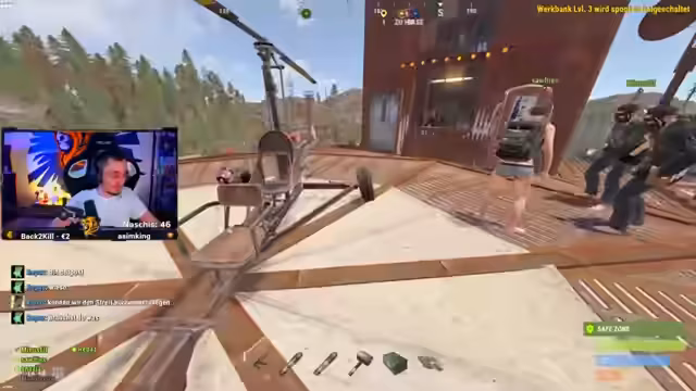 06:54:28Ein hochriskanter Helikopter-Raid beginnt, bei dem die Streamer angreifen, während sie als 'Engel' bezeichnet werden. Es kommt zu einer massiven Eskalation als die Gegner mit Waffen kontern und die Streamer unter Beschuss nehmen. Der Höhepunkt ist ein spektakulärer Heli-Crash, bei dem mehrere Gegner getötet werden. Der Erfolg des Raids und die dabei erhaltenen Beute, wie ein M4-Shotgun, werden als game-changing eingestuft. Die Clip-Perspektiven werden im Chat geteilt.