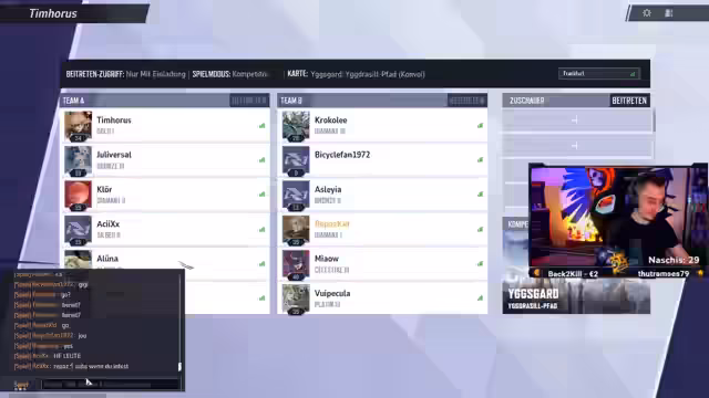 01:41:42Es gibt technische und organisatorische Hürden bei der Zusammenstellung des Teams für das bevorstehende Turnier. Der Streamer sucht verzweifelt nach einem Mitspieler, der den Tank-Rolle besetzen kann, und stellt fest, dass sein Team ohne einen solchen stark benachteiligt ist. Ein geplanter Mitspieler namens "Kraka" verspätet sich stark, und es wird stattdessen ein Ersatzspieler namens "Yoshi" ins Team geholt, der jedoch auch Probleme mit der Verbindung hat. Der Streamer drückt seine Nervosität und die damit verbundene Angst vor dem Turnier aus.