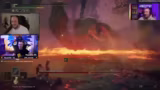 09:35:25Der Streamer kämpft gegen den Boss Reikard im Spiel Elden Ring. Der Kampf erfordert präzises Ausweichen, Timing und Management von Leben und Mana. Nach mehreren Versuchen gelingt es, die erste Phase sauber zu meistern, doch die zweite Phase gestaltet sich äußerst herausfordernd durch massive Angriffe und die Gefahr der Lava. Der Streamer gibt ununterbrochen Ratschläge und Hinweise, um den Sieg zu ermöglichen. Er bemängelt wiederholtes Laufen in die Lava und fordert konsequenten Druck auf den Boss, um dessen Phasenwechsel zu verhindern.