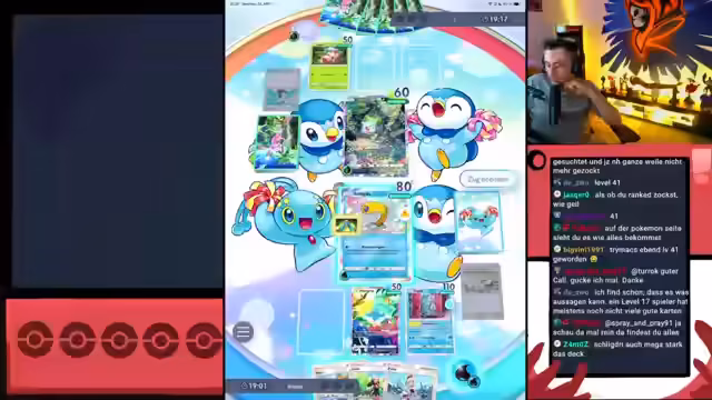 00:15:02Nach einem längeren und etwas frustrierenden Opening-Prozess, bei dem viele unerwünschte Karten wie Riolu und Knuddeluff gezogen werden, gelingt es dem Streamer schließlich, das fehlende Bidifass-EX zu ziehen. Damit ist das Set offiziell vervollständigt. Als Belohnung wird das exklusive Shiny-Embel freigeschaltet, das den Streamer besonders freut, da es optisch ansprechend ist und einen gewissen Prestige-Faktor besitzt.