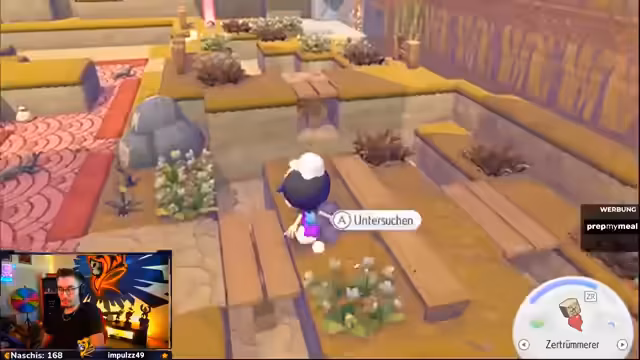03:50:05Auf der Suche nach einem passenden Pokémon mit dem Talent „Plattwalzen“ für den Wiederaufbau des Pokémon Centers erkundet der Streamer eine Höhle. Dabei werden neue Pokémon wie Pinsier und Driftloon angetroffen. Nachdem ein Hilfspokemon gefunden wurde, wird die Erkundung fortgesetzt und führt zu einem riesigen Strand. Dort trifft der Streamer auf weitere Bewohner der Gegend und erhält neue Bauanleitungen, zum Beispiel für ein Lagerfeuer, was den Spielinhalt weiter erweitert.