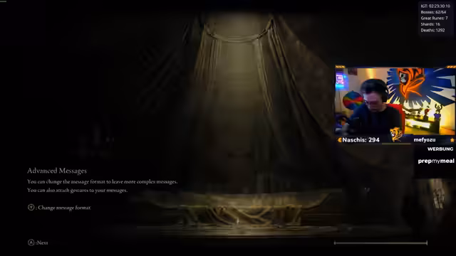 05:28:24Der Fokus verlagert sich auf Elden Ring, genauer gesagt auf das Directors-Cut-DLC. Der Streamer kämpft gegen drei besonders starke Bosse: einen goldenen Hippo, Gaius und den Bloodthief-Biest. Die Kämpfe sind äußerst schwierig, da jeder Fehler tödlich ist. Der Streamer testet verschiedene Strategien, um diese nervigen und starken Gegner zu besiegen.