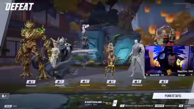 03:55:51Der Streamer geht mit seinem Six-Stack-Team, bestehend aus Spielern wie Reapers und Noserino, ins Spiel. Sie besprechen ihre Erfahrungen aus einem vorherigen Turnier und analysieren ihre Spiele. Das Team plant, anstehende Matches strategisch anzugehen und wählt die Charaktere Magneto, Groot und Luna für das kommende Match aus. Der Fokus liegt auf einem koordinierten Angriff und der Verteidigung der eigenen Basis.