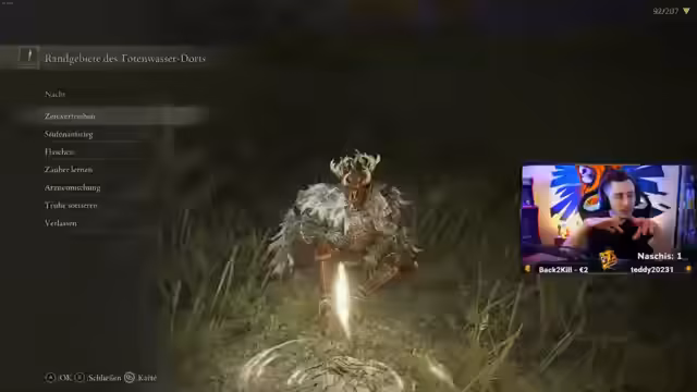 03:35:07Der Streamer navigiert durch das gefährliche Gebiet Lake of Rot in seinem No-Death-Run. Er stößt auf starke Gegner wie Feuerwölfe, Riesen und Krabben, was ihn sehr unter Druck setzt. Er versucht, sich mit Goldener Saat einen Weg bahnen, scheitert jedoch an den Kämpfen und muss die Area vorerst wieder verlassen, nachdem er von einem Gegner besiegt wurde. Die Durchquerung stellt sich als Albtraum heraus und er äußert große Frustration über die harten Gegner.