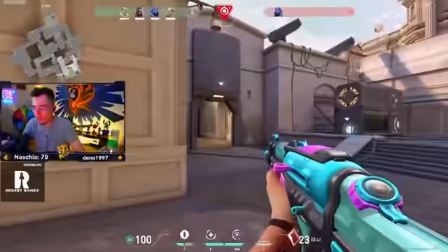 05:43:23Das Spiel beginnt mit einem turbulenten Startduell. Der Gegner setzt auf eine Standardstrategie, während das eigene Team versucht, durch einen schnellen Seitenwechsel und aggressive Rauchvorhänge (Smoke) ins Hinterland zu gelangen. Der Streamer gibt ständige In-Game-Anweisungen, um die Positionierung seiner Mitspieler zu optimieren und den Gegner unter Druck zu setzen. Es geht darum, die Kontrolle über Schlüsselpositionen wie die Mitte und die Seitenlinien zu erlangen, um die Spike-Plantung zu ermöglichen oder den Spike erfolgreich zu verteidigen.