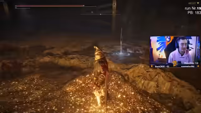 00:18:16Nachdem sich die Technik wieder stabilisiert hat, geht der Streamer weiter mit seinem Randomizer-Run voran. Er beschwert sich, dass ihm bislang nur sehr einfache und unbedrohliche Bosse wie Gräberwächter und Lacher-Bosse begegnet sind, was den Run im Moment sehr einfach, aber auch sehr enttäuschend macht. Der Fokus liegt weiterhin darauf, die benötigten Schmiedesteine zu finden, um sein Equipment aufzuwerten. Er erhält einen Fünferschmiedestein, was eine große Erleichterung bedeutet.
