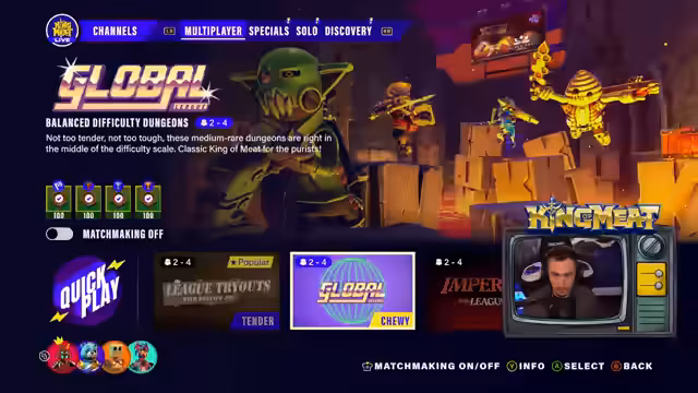 00:02:26King of Meat ist ein 4-gegen-4 Multiplayer-Actionspiel mit Hindernisparcours, Rätseln und Kämpfen. Das Spiel bietet die Möglichkeit, eigene Dungeons zu kreieren und Community-Inhalte zu erkunden. Teams aus Köln treten in verschiedenen Modi wie Dungeons, Schickerei und Slade gegeneinander an. Wichtig ist nicht nur das Durchspielen der Level, sondern auch das Sammeln von Schätzen und Punkte. Das Spiel verbindet Plattform-Elemente mit Hack-and-Slay-Aktionen und erfordert Teamwork und strategisches Vorgehen.