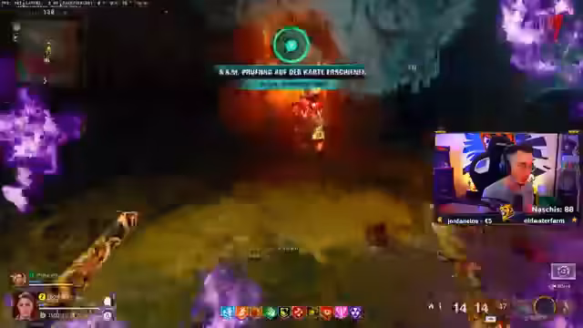09:46:03Das Streamer-Team erkundet den finalen Bossbereich für den Wächter-Artefakt-Bossfight. Sie analysieren die komplexe Mechanik mit rotierenden Ringen, die das Artefakt durchlaufen muss. Die Spieler finden heraus, dass das Artefakt nur Schaden nimmt, wenn Gegner in den Kreisen getötet werden und Seelen in die Mitte fliegen. Sie kämpfen sich durch mehrere Wellen, kaufen Perks wie PhD Flopper und nutzen diverse Waffen, um sich für den finalen Kampf zu rüsten und die Boss-Phase einzuleiten.