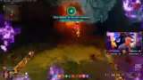 08:33:56Nachdem die Streamer die Statuen aktiviert haben, erscheinen plötzlich mächtige Boss-Zombies. Ein Teammitglied gerät in Schwierigkeiten, hat nur noch 1 AP und einen sehr geringen Schild. Es kommt zu einem harten Kampf, bei dem beide Spieler mehrfach sterben und sich gegenseitig wiederbeleben müssen. Sie finden heraus, dass der Schaden das Sziel des Spielers anstatt des Lebens reduziert, was für Verwirrung sorgt.