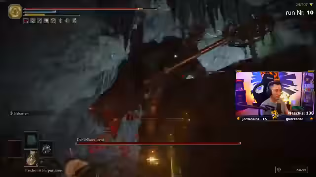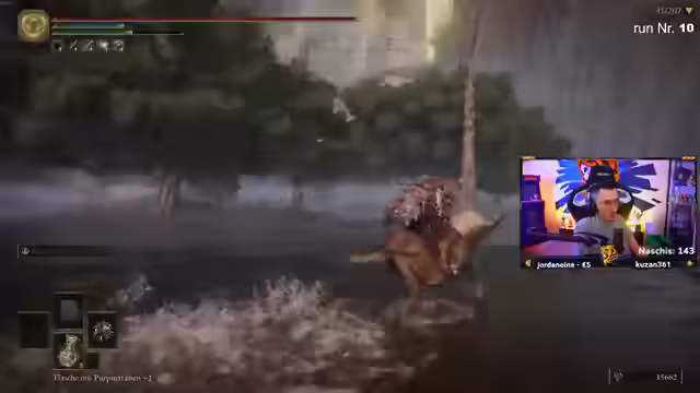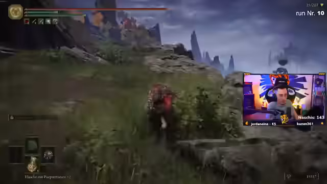 12:00:36Der Streamer interagiert stark mit seiner Community, spendet Prime-Abonnements und lockt mit Wetteinsätzen. So wetten die Zuschauer, ob er es schafft, 31 Bosse im Elden Ring Run zu töten, um sich zwei Prime-Abos zu verdienen. Er zeigt sich angetan von der Unterstützung, besonders von einem Nutzer mit 18 Monaten Support, und beschreibt seinen eigenen Spiels als 'Sadomasochismus', da er Monster Hunter lieber alleine spielt.
