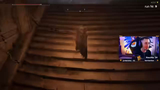 03:40:33Selbst nach der Umrüstung bleibt der Kampf gegen die Sternfallbestie eine immense Herausforderung. Zusätzlich zum Hauptgegner muss ein "Black Knight Assassin" und ein weiterer DLC-Gegner, der den Streamer in der Luft angreift, bekämpft werden. Die fehlende Reichweite des Builds wird wieder zum Problem, da der Boss nicht effektiv getroffen werden kann. Dies führt zu einem Zustand purer Verzweiflung und der Erkenntnis, dass der Retten des Runs ein "tryhard" Akt ist.