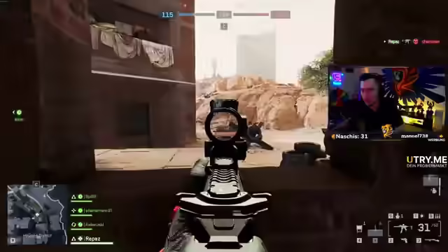 06:29:40Es wird über das Spielen mit Sam diskutiert und darüber, ob dadurch auch mehr XP erzielt wurden. Der Streamer bemerkt, dass es schwierig ist, Freund und Feind zu unterscheiden, und fragt sich, wo sich die Gegner befinden. Es wird angemerkt, dass Spieler mit Game Pass möglicherweise andere Vorteile haben. Ein Mitspieler zerstört nicht den Respawn-Beacon, was Unverständnis auslöst. Der Streamer bemerkt, wie gut Gegner durch Wände gesehen werden können und kommentiert einen schnellen Kill. Er spricht über die Schwierigkeit, einen Slide durchzubekommen, wenn Gegner einen direkt angreifen, nachdem sie wiederbelebt wurden. Die deutsche Sprachausgabe wird positiv erwähnt. Der Streamer beschreibt einen schnellen Kill als "unerträglich". Es wird ein grüner Laser erwähnt. Der Stream endet abrupt. Der Streamer nimmt eine 27 mit (vermutlich ein Item) und freut sich über einen Suppressor für die G36, der für mittlere Distanzen geeignet ist. Er vergleicht verschiedene Laufaufsätze für die Waffe und entscheidet sich für einen, der die Zielgeschwindigkeit erhöht und die Projektilgeschwindigkeit verbessert.