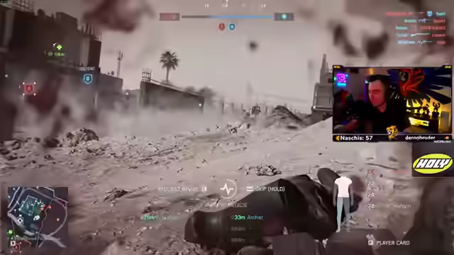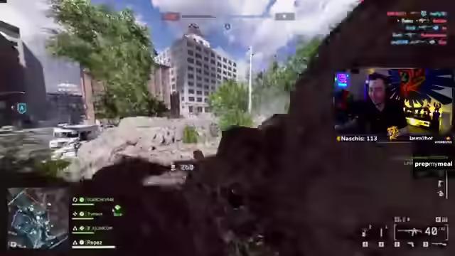 06:40:12Das Spiel wird positiv bewertet, mit Vergleichen zu Battlefield in Bezug auf Snipping, Helikopter, Fahrzeuge und Wiederbelebungen. Der Streamer stirbt und spawnt bei einem Teamkollegen, um Türme einzunehmen. Es wird festgestellt, dass man oft von mehreren Gegnern gleichzeitig beschossen wird. Die Möglichkeit, eigene Medi-Packs zu werfen, wird als positiv hervorgehoben. Es wird festgestellt, dass es wenig Deckung gibt und die Gefahr besteht, schnell zu sterben. Ein Gegner wird mit 100 Schaden getroffen, und es wird ein Fortnite-Spieler gesichtet. Der Streamer explodiert und kämpft mit einem Panzer, der ihn verfolgt. Es wird kurz überlegt, Panzerabwehr zu spielen. Die Umgebung wird als grau und trist beschrieben, obwohl das Spiel auf dem Monitor gut aussieht. Der Streamer setzt seine Heilung ein. Es wird kurz zu Max' Stream geschaltet, um zu sehen, ob er Kills erzielt hat. Der Streamer äußert den Wunsch, zu snipen, bemängelt aber das lange Leveln der Sniper und die lange Bullet-Travel-Time. Er erwähnt, dass er sich erst wieder mit dem Snipen auf dem Controller vertraut machen müsste. Abschließend wird der OLED-Bildschirm positiv hervorgehoben.