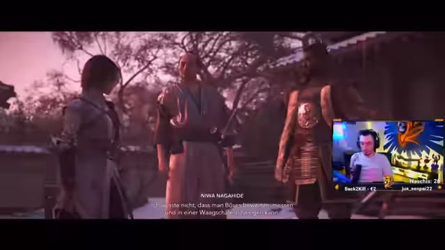 00:19:33Nach dem dramatischen Höhepunkt der Hauptquest widmet sich der Streamer diversen Nebenquests. Eine besondere erwähnende Quest ist das Aufspüren und Eliminieren der Schüler von Yasukes Sensei, um diesen zu ehren. Zudem wird ein potenzieller Verbündeter, Kensei, rekrutiert, der sich Yasuke und seinem Kampf anschließt. Die neue Verbündete Ibuki wird ebenfalls vorgestellt, die im Kampf unterstützen kann und ausgebildet werden darf.