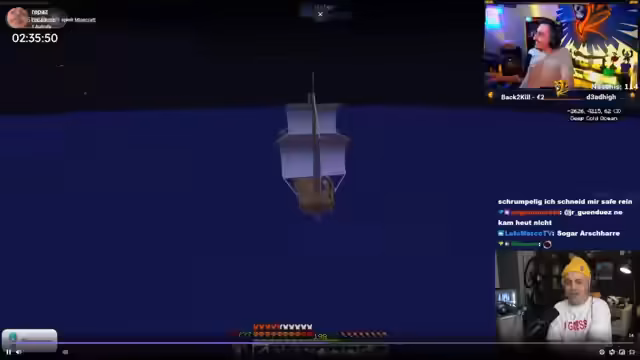 01:47:58Während der Erkundung stößt der Streamer auf mehrere physische und spielerische Hürden. Das Besteigen des höchsten Berges der Karte wird als extrem schwierig beschrieben, mit langen Abhängen und steilen Anstiegen. Ein Bug im Spiel wird zufällig getriggert, der den Streamer unfähig macht, Spezialfähigkeiten zu nutzen, was einen Kampf gegen einen starken Boss noch knapper gestaltet. Trotzdem findet er Lösungen und arbeitet sich weiter vor.
