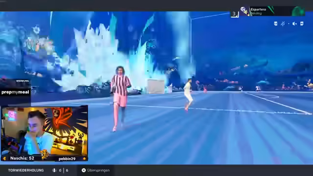 05:40:50Der Streamer gibt eine wichtige Ankündigung für die Zukunft. Es soll eine Kooperation mit dem deutschen Streamer 'rive' geben, bei der ein deutsches Turnier mit 10.000 Euro Preisgeld geplant ist, wovon 5.000 Euro für das siegreiche Team ausgeschüttet werden. Das zeigt den Wunsch nach mehr Community-Beteiligung und professionelleren Strukturen. Gleichzeitig wird die taktische Aufstellung diskutiert, besonders die Rolle des Torwarts. Asics wird stark kritisiert, da er bisher kaum Ballkontakt hatte, was zu einem Tausch mit Claire führt, um offensive Dynamik zu schaffen.