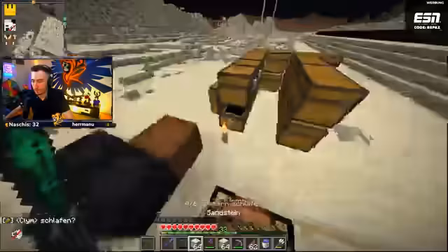 01:30:57Die Konzentration liegt auf dem Bau der finalen Arena für den 'Säulen'-Projekt. Die strategische Platzierung der Beacon-Säulen ist zentraler Diskussionspunkt, um den Bauablauf zu optimieren. Die Truppe arbeitet daran, die Basis fertigzustellen und die notwendigen Blöcke wie Sandstein zu platzieren. Dabei kommt es zu kleineren technischen Problemen und die Feinabstimmung der Bauelemente erfordert präzises Arbeiten.