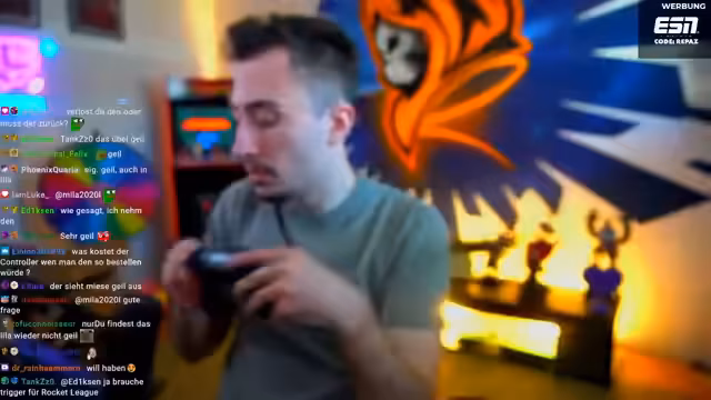 00:09:11Ein großer Teil des Streams widmet sich der Vorstellung des ersten Prototyps des 'Reaper Controllers'. Der Streamer zeigt begeistert das hochwertige Design, die Paddles und das Reapers Logo. Allerdings kritisiert er heftig die falsche lilane Farbe, die auf dem Prototyp verwendet wurde, während die Vorlagen ein elegantes Matt-Schwarz vorsahen. Er erklärt, dass die Farbwahl für das finale Produkt entscheidend sei und die aktuelle Lilafarbe nicht zum restlichen Design passe.