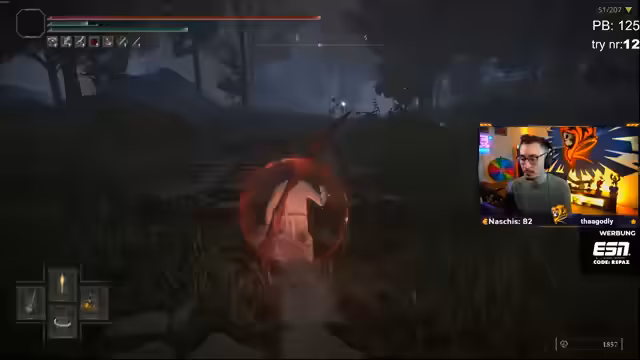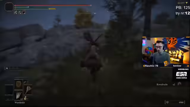 02:31:40Ein leichter Boss wie der Baumwächter tötet den Streamer mit einem einzigen Schlag, der die Hälfte der Lebenspunkte weggenommen hat. Die Schadensskalierung der DLC-Gegner wird als viel zu hoch empfunden und sorgt für schnelle, unerwartete Tode. Diese Momente werden als 'Downer' und 'kack' empfunden, brechen den Spielfluss und führen zu Frustration, insbesondere beim Boss 'Gallius'.
