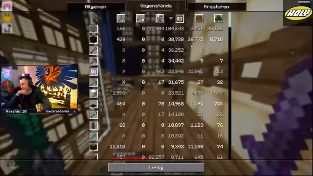 03:27:00Der Streamer wird mit der Notwendigkeit konfrontiert, überall Lampen zu platzieren, und schätzt, dass er vier Stacks davon benötigen wird, was er als „fucking crazy“ bezeichnet. Er bemerkt, dass er währenddessen stummgeschaltet war und vergleicht sich scherzhaft mit einer Maschine, die alles auswendig kennt. Ein kleiner Fehler in der „KI“ führt zu Frustration über fehlende Blöcke. Es wird die Drohung eines Mitspielers erwähnt, auszurasten, was als bedeutungslos abgetan wird. Eine Diskussion über ein mögliches Projekt im nächsten Jahr entsteht: der Nachbau der aktuellen Craft Attack Map, was als größter „Flex“ im Spiel angesehen wird. Statistiken über abgebaute Blöcke, verwendete Gegenstände und platzierte Blöcke werden geteilt, wobei die hohe Anzahl an platziertem TNT hervorsticht. Der Streamer plant die weitere Gestaltung des Gebäudes mit Half-Steps, Zäunen und Toren. Er äußert Schmerzen in den Augen vom Minecraft-Spielen und fragt sich, warum mit Shadern gespielt wird, da dies beim Bauen hinderlich ist. Die lange Stream-Dauer von neun Stunden und die damit verbundene Müdigkeit werden thematisiert, wobei der Streamer angibt, kurz vor einem Burnout zu stehen. Eine Diskussion über falsch platzierte Froglights und Holzmaserungen entsteht, und der Streamer betont, dass alles korrekt ist. Er stellt fest, dass die zweite Etage des Gebäudes nicht exakt dieselbe ist wie die erste, was zu weiteren Anpassungen führt. Es wird über die Schwierigkeit gesprochen, sich in der komplexen Baustruktur zurechtzufinden, da die Details sich ständig ändern.